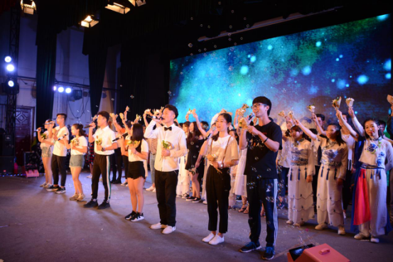 第三章“惜离别,永留恋”的开场视频是对一些大四同学的采访。看着熟悉的身影出现在IED屏幕上,看着他们口中那一声声的不舍与怀念,很多毕业生都不禁潸然泪下。接下来的节目则是优美动人的群舞《青花微凉》、笑中带泪的情景剧《重“心”开始,筑梦未来》、妖娆妩媚的《肚皮舞》。在晚会即将结束之际,由主持人与我院老师共同带来的朗诵《生命中的四年韶华》温暖人心,字字句句都是老师的叮嘱,字里行间都是同学们的不舍,将晚会推向了最后的高潮。最后,由今晚的有所演员一起合唱的《栀子花开》,并为毕业生献上代表着永远热爱与永远守候的栀子花,晚会至此结束。