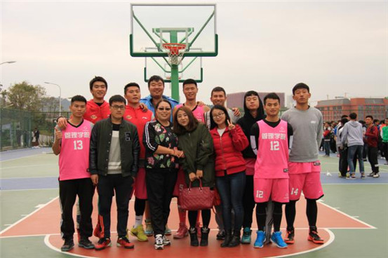 11月11日下午,我校体育节篮球赛总决赛在北校区篮球场进行,比赛双方为管理学院队与经济学院队。管理学院党委副书记张亚军、学生科科长芮丽华、团委负责人陈芊羽、学生科老师向珂莹也来观看了本场比赛。