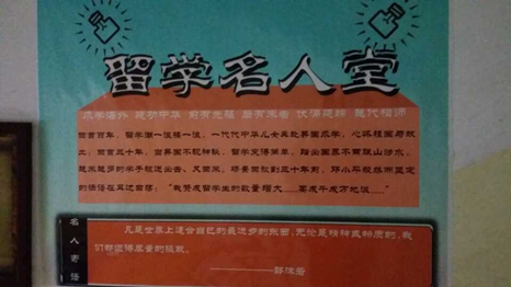 3月25日,管理学院国际教育项目组进行了形式创新、内容丰富的党的群众路线教育实践活动。学院党委书记陶玉顺、党委副书记于松、副院长林岚涛、项目组刘元媛老师与2012级、2013级意向留学的10余名学生就“抓住机遇、实现梦想”的话题进行了现场交流。学生将设计的“留学名人堂”海报张贴出来,其中包括对中国政治、科学领域具有留学背景的知名人士留学经历介绍,以鼓励广大学子抓住留学新浪潮的机遇、投身当代留学队伍并用坚韧不拔的精神实现梦想。