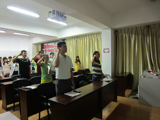 2014年7月1日周二晚19:00,“管理学院2012级本科生党支部庆祝中国共产党成立93周年专题组织生活会”在管理学院502教室召开。会议由支部副书记覃宪清主持,支部书记王老师及支部正式党员和预备党员共计45人参加了会议(1人请假)。