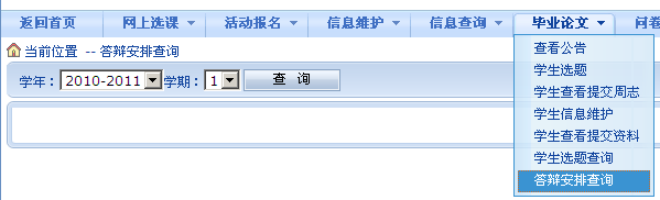 学生通过该功能查看自已的毕业答辩安排情况,菜单如下: