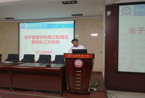 会议由党委书记陶玉顺主持。院长李烨向大会通报了《中共乐动官方网站委员会乐动官方网站关于做好管理学院第三轮岗位聘用工作的通知》,具体介绍了学院第三轮岗位聘用工作领导小组成员、第三轮岗位聘用工作安排,并要求全院教职工按照要求准时提交岗位竞聘材料,并鼓励中青年教师积极提高自身学历、职称。