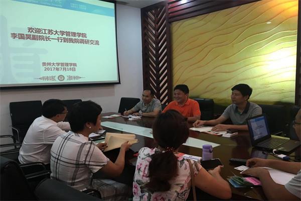 2017717日上午9:00,江苏大学管理学院李国昊副院长一行访问我院。我院院长李烨教授、副院长周莉莉教授、会计系主任李会萍副教授、MBA教育中心主任刘宁副教授、MBA中心副主任何跃勇老师及工商管理系李艳华老师参加了座谈。