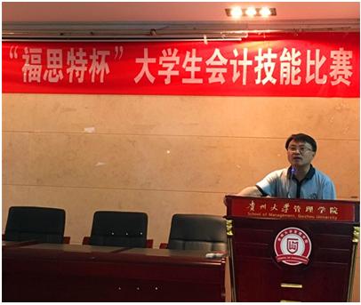6月4日上午,第一届贵州大学“福思特杯”会计技能大赛开幕式在我院三楼报告厅举行,李烨院长为大会致开幕词。此次比赛分为上午场和下午场两场在我校慎思楼机房举办,每场比赛三个小时,我院的11支参赛队伍在下午场参加比赛,经过三个小时的技能竞技之后完成了比赛。比赛共有15支队伍获奖,一等奖3支、二等奖5支、三等奖7支。我院的11支参赛队伍在比赛中荣获了2个一等奖、2个二等奖和3个三等奖的佳绩。