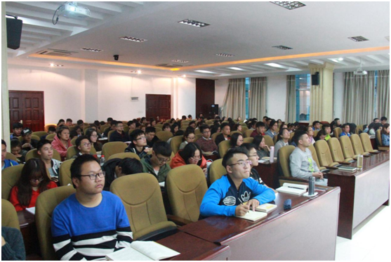 杨未教授最后与同学们分享了习近平总书记在十九大与贵州代表团谈论的贵州新定义,以及把十九大习近平总书记的三段话分享给在座的青年同学,希望广大同学要选择和坚持信仰,争取早日向党组织靠拢