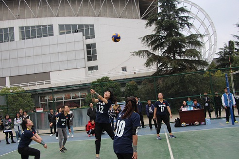 2017年11月15日上午十点整,贵州大学北校区体育馆举行了2017年排球锦标赛女子组四强循环赛,由管理学院对阵公共管理学院。两支队伍都是实力强劲的选手,双方打的难分难解,比分从比赛开始就相持住,两支强队谁也没有取得太大优势。随着管理学院一连串出色的团队配合,率先拿下一局的胜利。