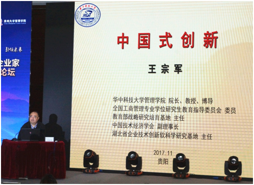 合影结束后,华中科技大学管理学院院长王宗军教授发表了关于中国式创新的主题演讲。