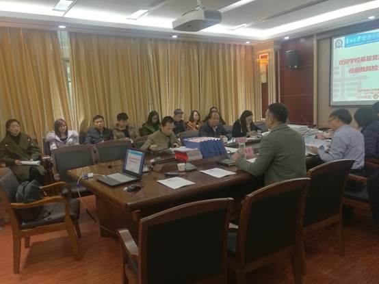 2017年12月19日下午14:30分,我院于一楼会议室接受学校2017年度党建工作考核,考核组安明刚书记、左章权副书记、杨静副书记到学院实地考核,学院党委成员、各教职工党支部书记、学生党支部书记、党总支负责人参加。考核会由党委副书记张亚军主持。