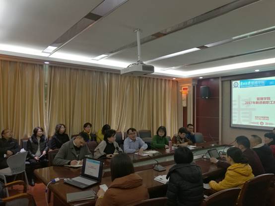首先,李烨院长向新进教职工介绍与会的学院党政领导,各科室(中心)负责人,包括教学科研科、研究生科、学生科、MBA教育中心、工程硕士(农业推广)办公室、学科办、实验室等相关科室(中心)负责人。接着,2017年学院新引进、新聘任教职工进行自我介绍。新进教职工们就教学工作量、科研工作与奖励、资源与学院教学实践相结合等工作提出个人意见与想法。