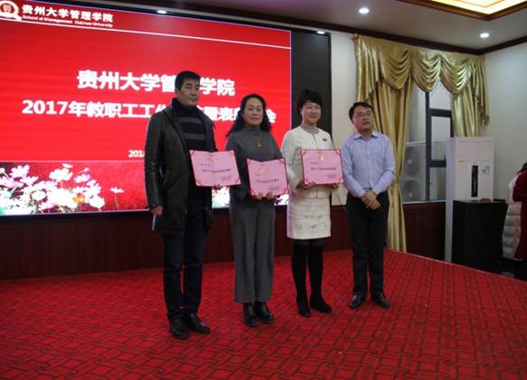 2017年学院召开丰富多彩的大型活动,包括召开第三届第一次教职工暨工会会员代表大、成功举办了2017年教学观摩课活动、承办中华博士会“双创”校园行走进贵州大学活动、承办中国MBA西南联盟“砥砺前行·和合共创”暨中国MBA西南联盟第十二届主席峰会、主办“第十二届玄奘之路国际商学院戈壁挑战赛贵州大学EMBA出征仪式暨戈壁征服与企业家精神分享会”、协办2017年中国国际大数据产业博览会“大数据与商务创新论坛”、承办第九届娃哈哈全国大学生创客营销实践大赛贵州省答辩暨颁奖仪式、成功主办贵州省第一届MBA管理案例精英挑战赛决赛、承办“学创杯”贵州大学第二届创业综合模拟大赛、成功举办贵州省系统工程学会2017年学术交流会、召开中国EDP教育联盟二〇一七年第二次主任会议和移动课堂、成功举行中国EDP教育联盟首届企业家重走长征路活动、承办第十四届工业工程应用与推广及人才培养研讨会暨第十七期高等学校工业工程专业暑期教师培训班、承办的第二届哲学社会科学智库名家·贵州学术年会暨贵州省深化供给侧结构性改革研讨会、召开“深入学习十九大精神 奋力推进双一流建设”为主题的教职工大会、召开党委中心组(扩大)理论学习会议并深入学习贯彻党的十九大精神、举办“大扶贫•贫困脆弱性治理”论坛、开展深入学习宣传贯彻党的十九大精神报告系列讲座等。李院长分别从队伍建设(含人才引进、师资培养、学历提升、考核与聘岗)、人才培养(含本科教学、实验室教学、本科生管理、学术型研究生教学及管理、专业硕士学位研究生教学及管理)、科研与学科建设、服务社会(EDP)、对外交流与合作(含国际交流、院企/地合作)、党建、统战、离退休工会等方面向与会人员介绍了学院2017年各项事业的发展情况,并简要介绍了学院2017年工作的亮点,包括研究生科研水平上台阶、本科生助力脱贫攻坚献力量、新媒体运用初显成效、关注学生心理健康、对外合作交流成绩突出、国际交流与合作成绩斐然、EDP(高级管理培训)硕果累累、承办国际/国内大型会议、深入学习宣传贯彻党的十九大精神报告系列讲座、首批青年博士教师成功进驻校外教学实践基地等。