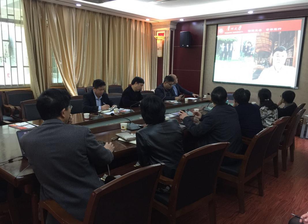 2018年4月10日10:00,贵州省社科联党组书记包御琨一行2人到我院调研“十大人文社科创新团队”建设,哲学与社会科学研究院常务副院长、农林经济管理创新团队负责人洪名勇教授,发展规划处副处长、公司治理与财务管理创新团队负责人冉光圭教授,管理学院院长李烨教授、副院长宋山梅教授,创新团队教师代表许为宾博士、孙宋芝博士参会,会议由李烨院长主持。