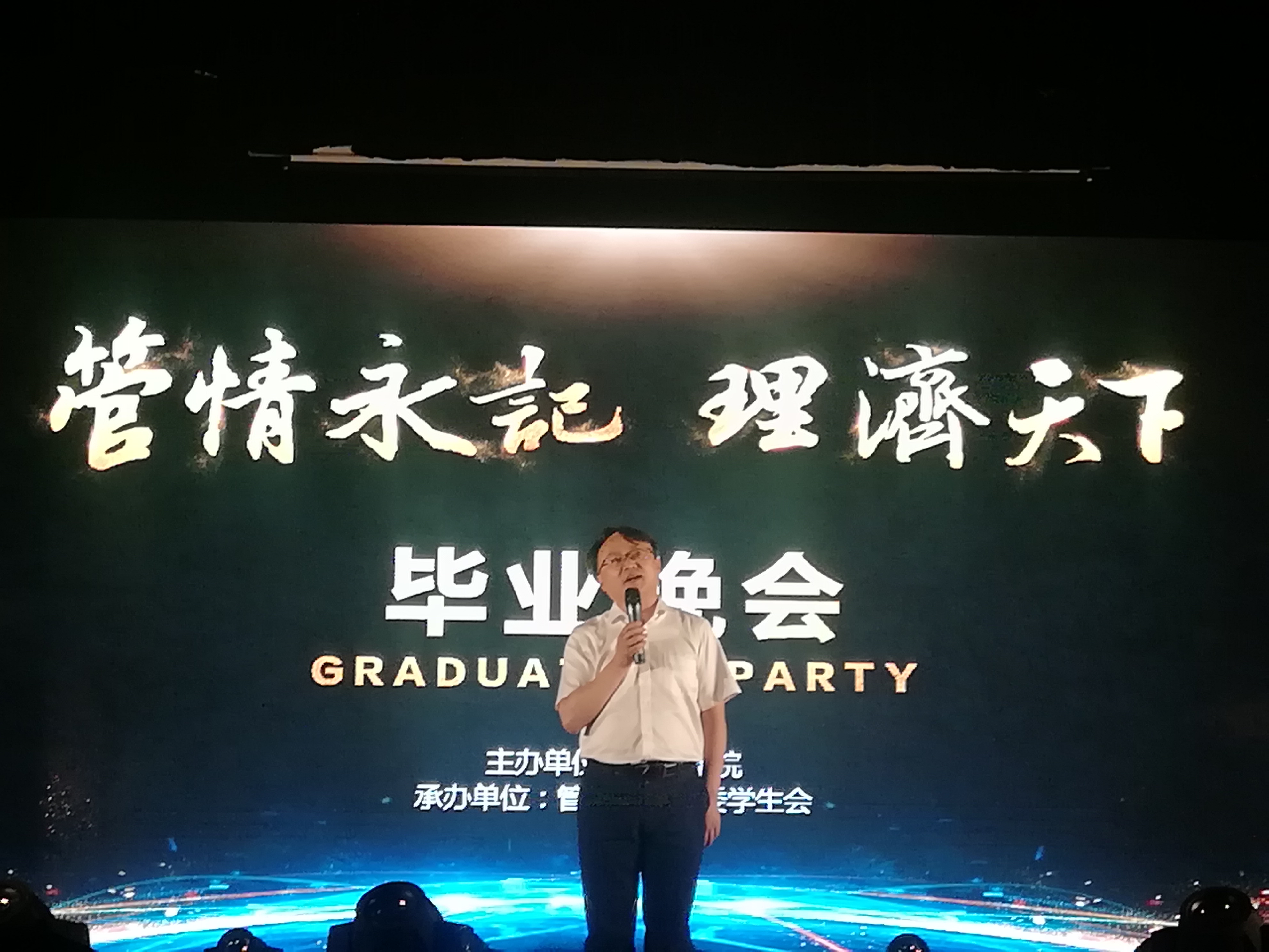 5月24日晚上19:00,乐动官方网站“管情永记·理济天下”2018届学生毕业晚会在北区大礼堂隆重举行。学院院长李烨教授、校团委副书记蒋红霞老师、学院副院长王婷,副院长宋山梅,党委副书记张亚军及学院各相关科室的老师参加了晚会。
