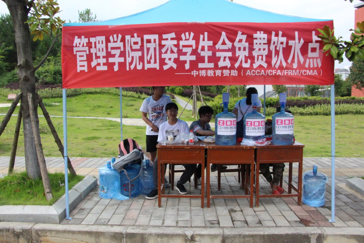 201878日我院17级同学进行军训第二天,为了使我院17级的同学们感受我院对他们的热情和欢迎,我院团委学生会特在17级同学的军训训练场地摆点进行军训送凉爽活动。在炎炎夏日中,由车老师与1516的学长学姐们准备好矿泉水、甜点以及一些药品来为学弟学妹们带来管院的温暖。