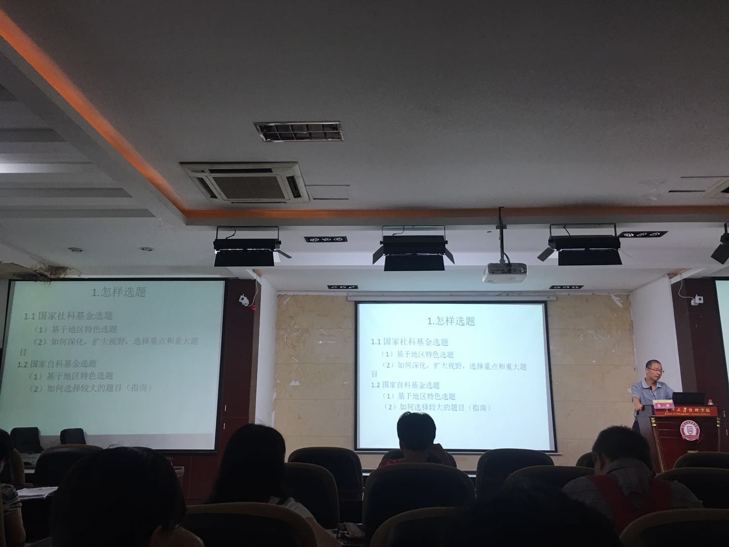 为切实提升我院教师的科研能力,特别是申报高级别项目和产出高水平科研成果的能力。2018年7月19号上午,我院“教师科研能力提升暨2019年国家社科基金申报培训工作”正式启动。来自南京航空航天大学经济管理学院博士生导师张伟教授莅临我院三楼报告厅作题为“国家基金申报的几点认识和体会”专题讲座。讲座由院长李烨教授主持,管理学院及相关兄弟学院教师共120余人参加讲座。