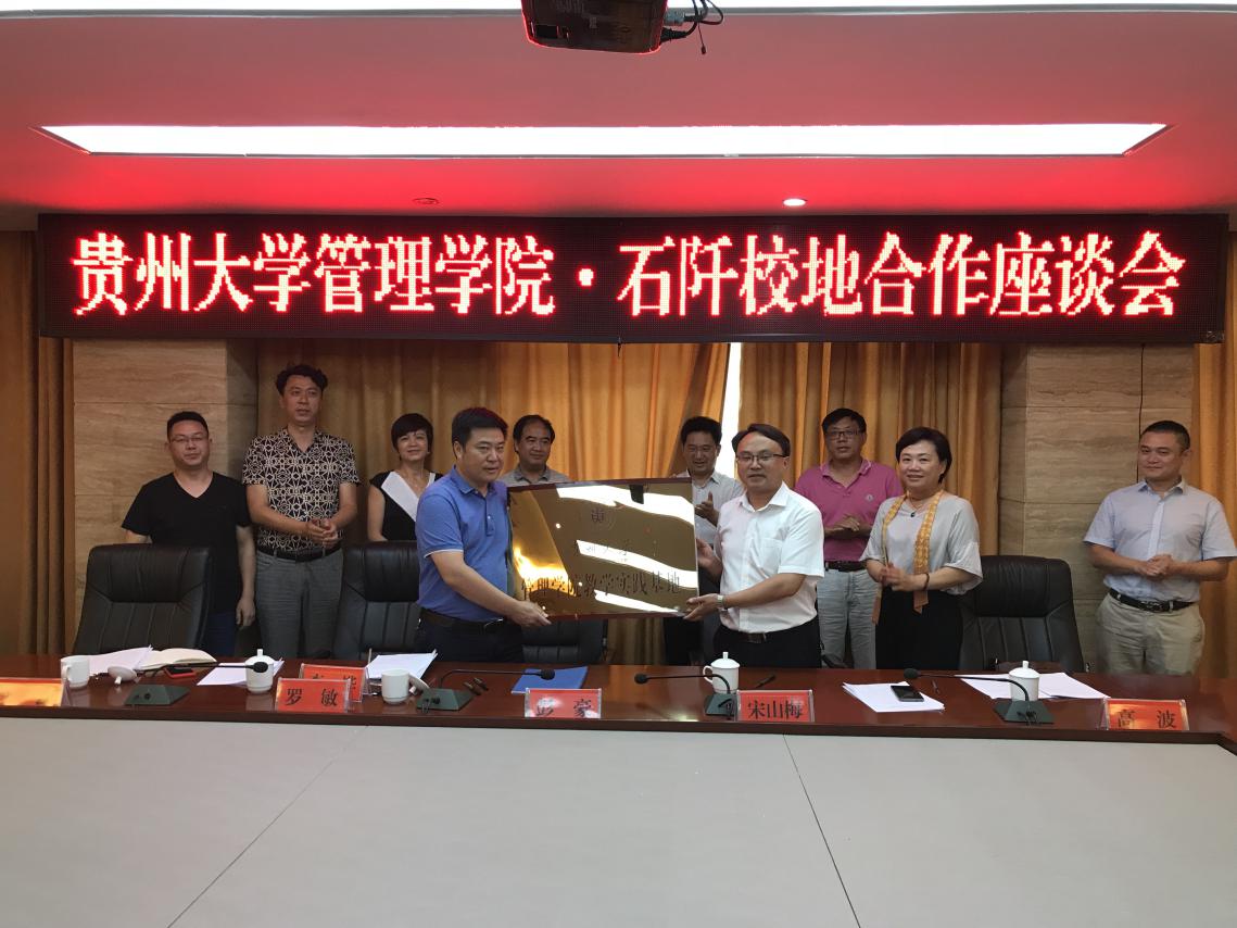 为丰富管理学院学生实践基地资源,促进产学研相结合,强化学生实践能力2018823日下午管理学院院长李烨石阡县长彭豪签订了合作框架协议及共建本科生、研究生实践基地协议,同时举行了实践基地授牌仪式。管理学院院副院长宋山梅教授、罗敏教授、高波教授、对外合作办公室主任王云副教授、办公室副主任陈健及校友会执行秘书长陆春宝以及石阡县县委、政府的部分领导、县招商局、教育局、县扶贫办、县金融办、县财政局等部门共同参加仪式。整个仪式由石阡书记皮贵怀主持。