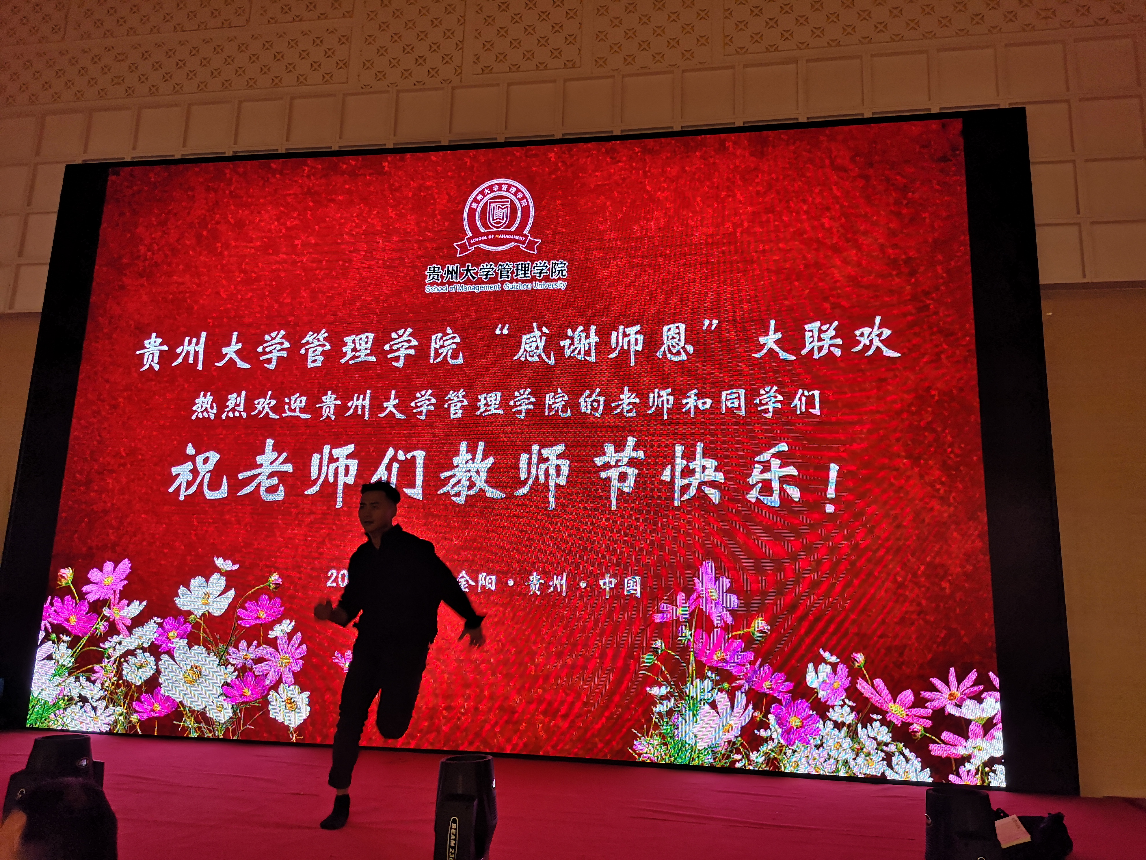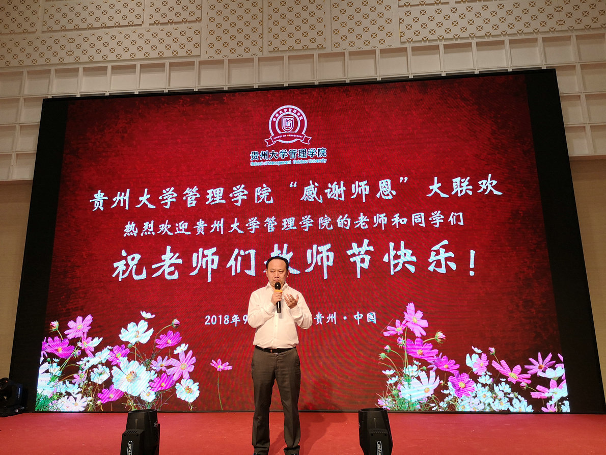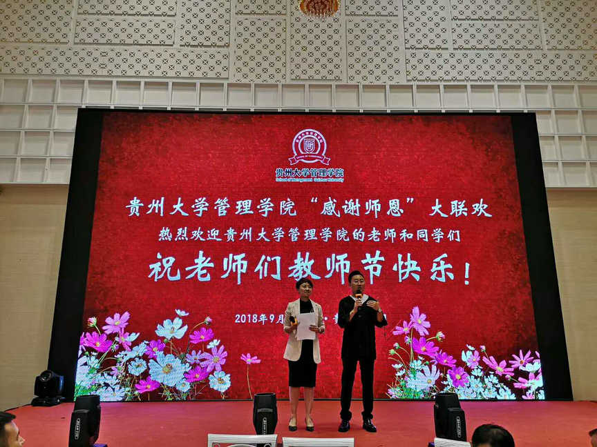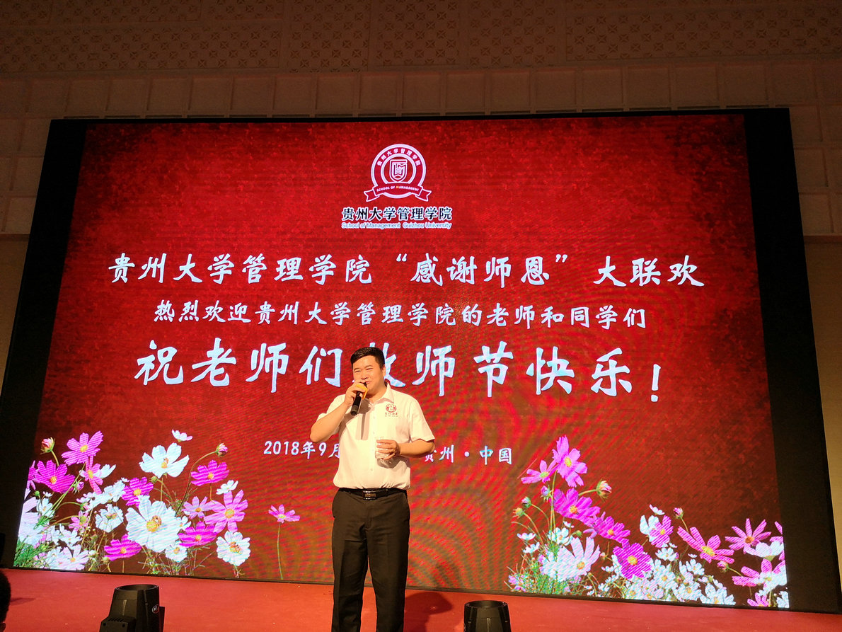 910下午,乐动官方网站校友会大型活动感谢师恩大联欢在金阳国窖1573本次活动由乐动官方网站主办,贵州大学校友总会管理学院分会承办,同时贵州国际酒类博览会股份有限公司与牟池酒业赞助支持。时值教师节,贵州大学管理学院院长李烨、副院长王婷、周莉莉、宋山梅,院党委副书记张亚军等200名师生欢聚一堂,在歌声舞语之中,共同庆祝教师节。