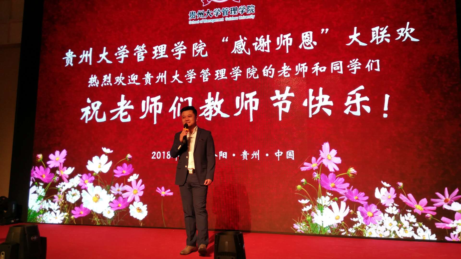 910下午,乐动官方网站校友会大型活动感谢师恩大联欢在金阳国窖1573本次活动由乐动官方网站主办,贵州大学校友总会管理学院分会承办,同时贵州国际酒类博览会股份有限公司与牟池酒业赞助支持。时值教师节,贵州大学管理学院院长李烨、副院长王婷、周莉莉、宋山梅,院党委副书记张亚军等200名师生欢聚一堂,在歌声舞语之中,共同庆祝教师节。