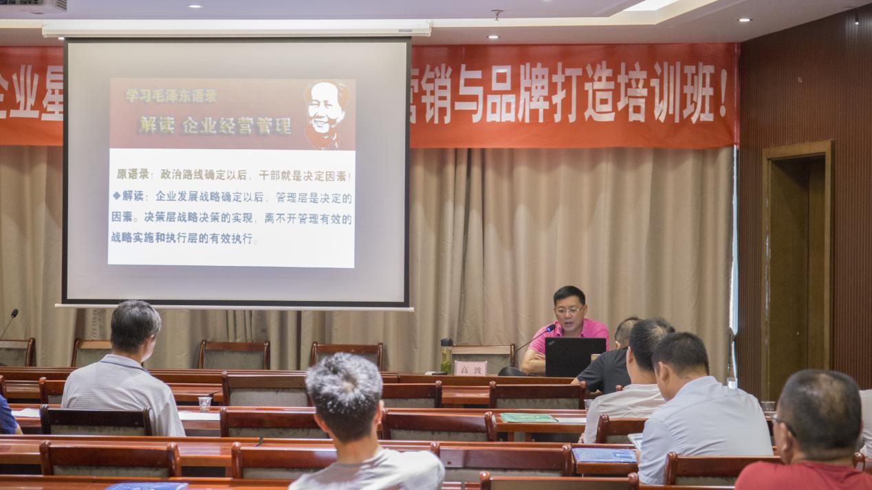 下午的讲座分为两个环节。首先高波教授作了题为“毛主席语录在企业管理中的运用”的报告。他凭着自己积累的经验和丰富的阅历,给学员们讲解及分析了毛主席语录在企业管理中的运用。