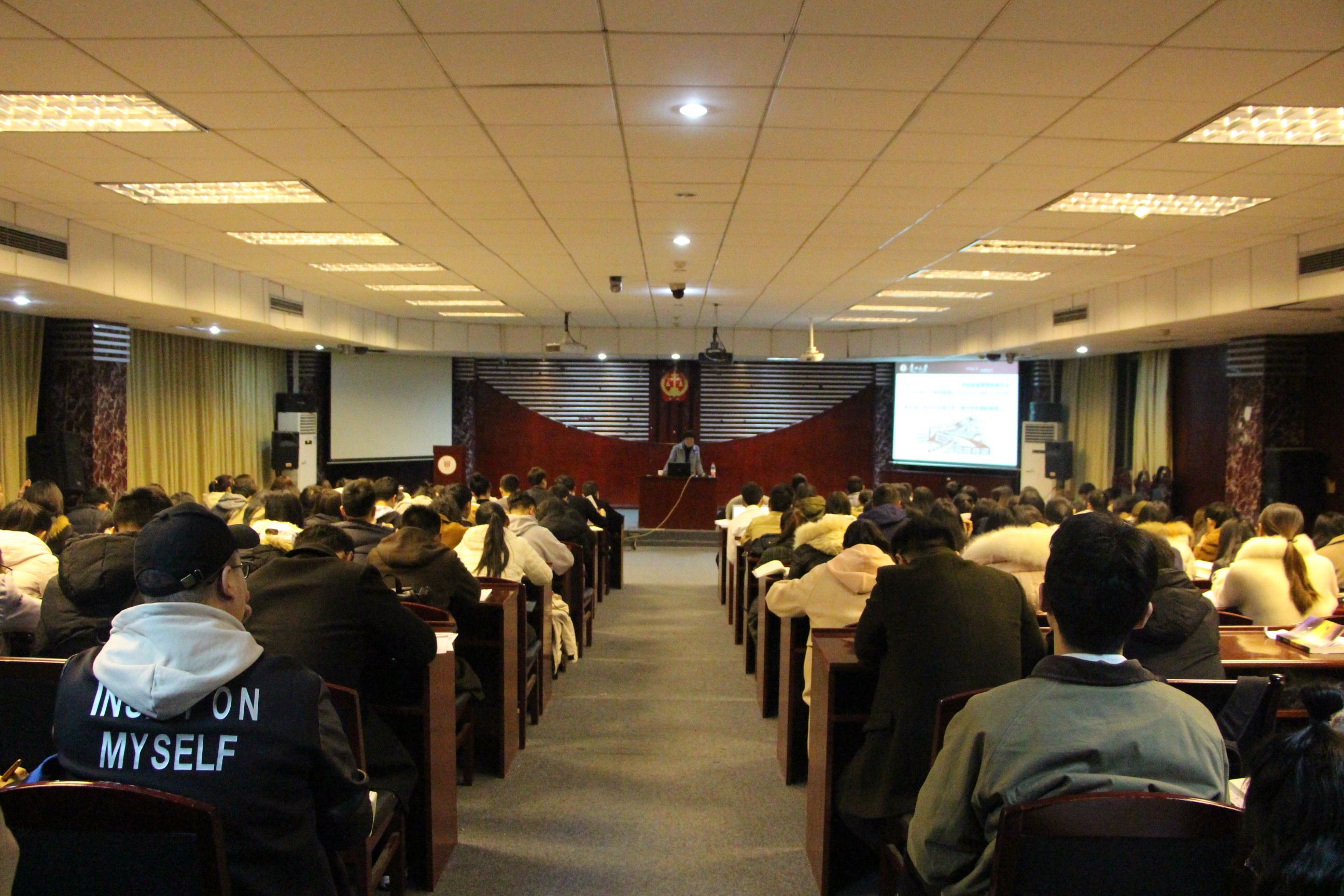 1125日晚1900,校党委令狐彩桃副书记受邀为管理学院与法学院第二十九期入党积极分子授课,令狐书记以《习近平新时代青年教育思想》为主题,在慎思楼的模拟法庭为管理学院和法学院第29期入党积极分子培训班的讲授本期学员的最后一堂课。