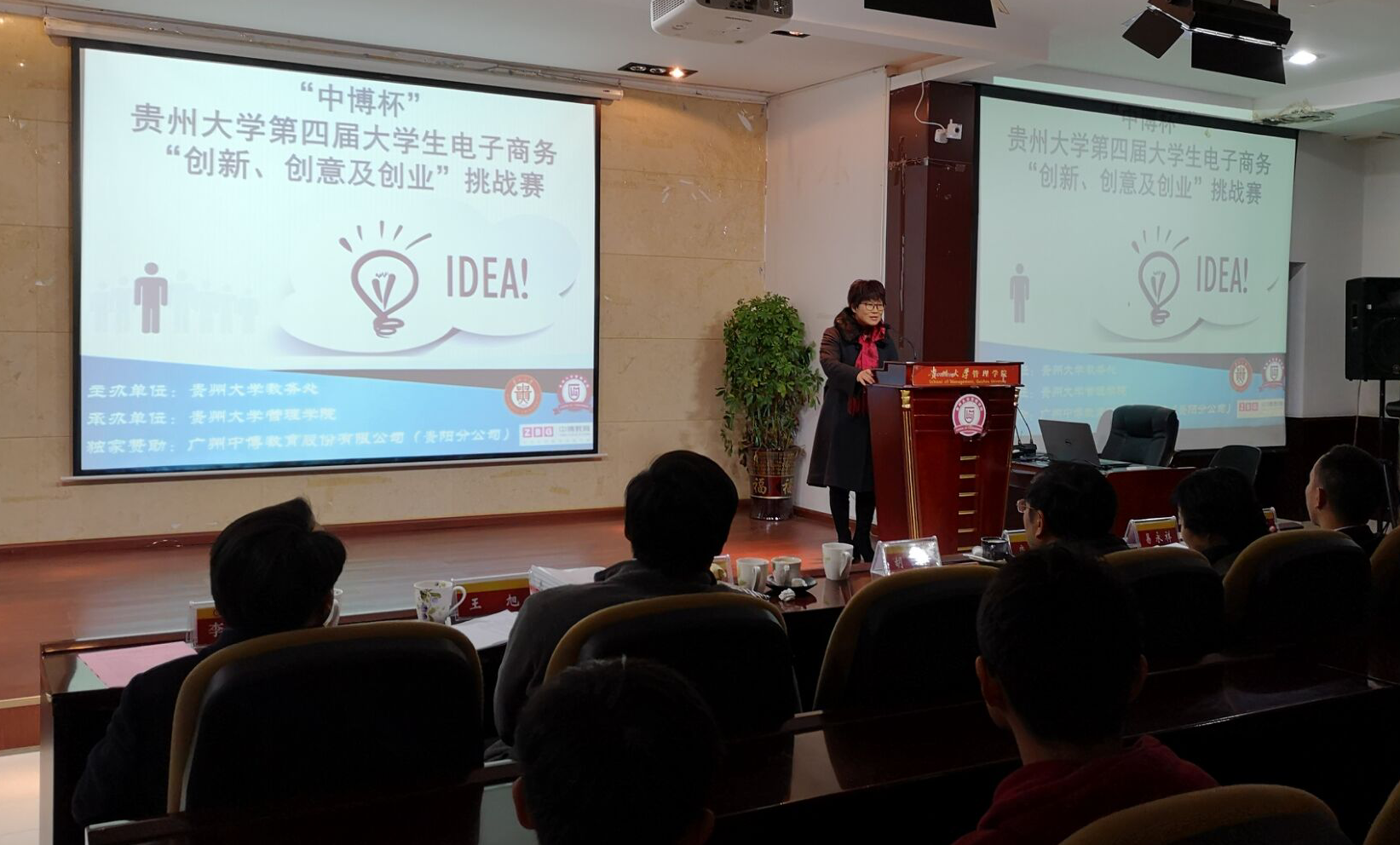 为激发当代大学生自主创业的热情,培养和提升大学生创新意识、创业精神和能力,促进实现以创业带动就业,以实践深化理论的培育目标。由贵州大学教务处主办,乐动官方网站承办的贵州大学第四届大学生电子商务“创新、创意及创业”挑战赛,于201812713:00在管理学院三楼报告厅顺利举行。