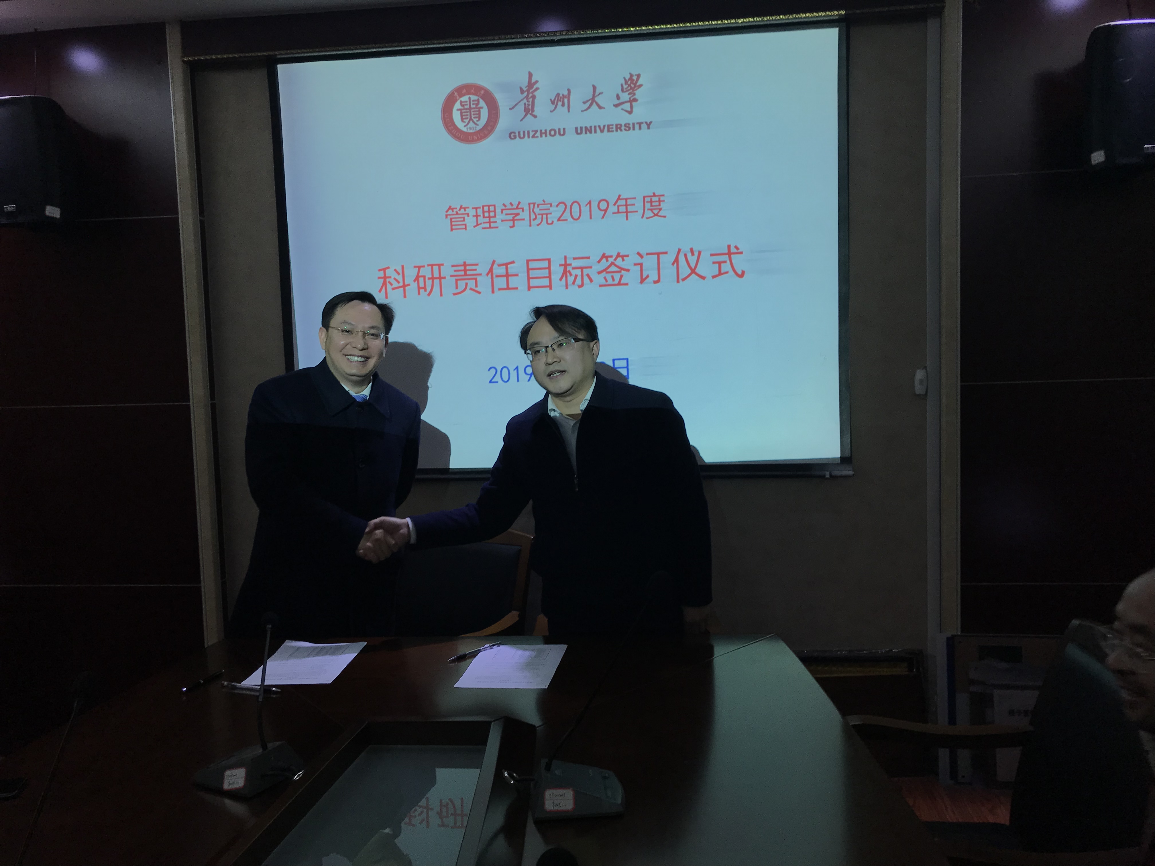 最后,根据学校的要求,为了更好地完成科研目标,学院将2019年度国家基金申报工作任务进行细化和分解,并把科研目标分值落实到每位教师身上,拟定了2019年科研考核目标责任书,李烨院长分别与5个系的系主任依次进行签约。