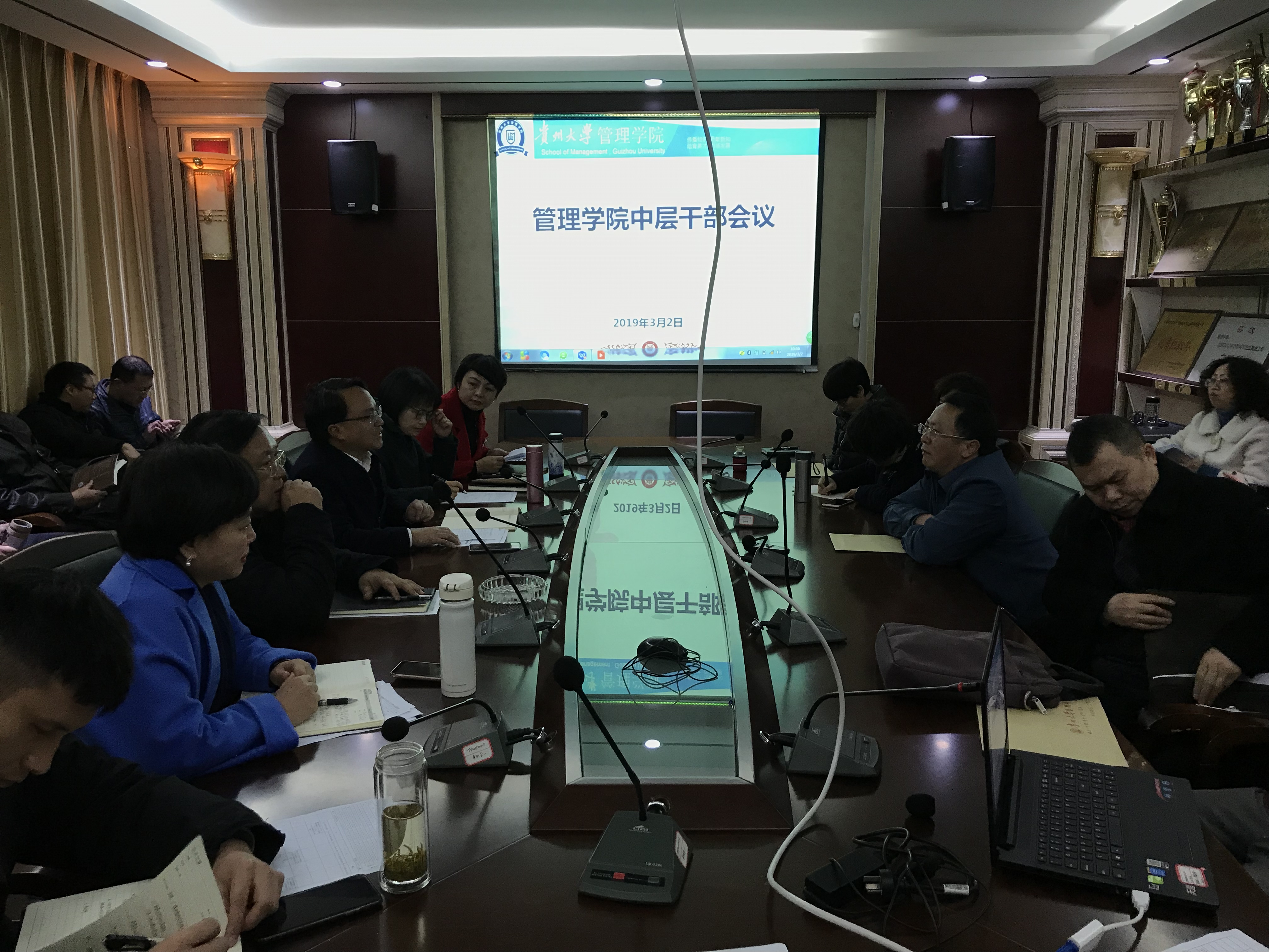 2019年3月2日上午10:30,管理学院组织召开学院中层干部会议,学院党政领导班子、各科室(中心)负责人、系主任、系党支部书记等中层干部参加会议,会议由学院院长李烨主持。