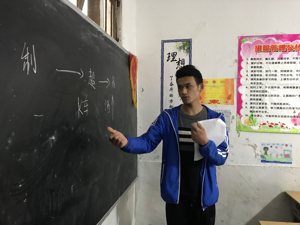 志愿者们来到育才学校后先与小朋友们进行交流,拉近了距离。之后活动分为三组进行,一组由谯秀丽同学对一年级的孩子们进行教学,另一组是王冰同学对六年级的孩子们进行教学,第三组是易超等同学在户外和初中的孩子们开展体育锻炼。