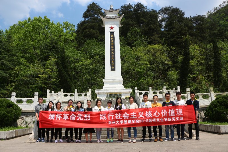 201949日下午14:30,管理学院2018级研究生第三党支部全体党员及13名入党积极分子赴黔灵山公园组织开展缅怀革命先烈,践行社会主义核心价值观扫墓活动。活动由党支部宣传委员丁双洁同志主持。