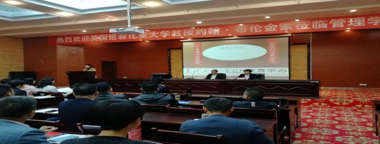 为增强乐动官方网站EDP教育中心国际化开放程度,聘请英国诺森比亚大学John Blenkinsopp教授于2019413——14日两天在贵州大学北校区双馨园宾馆五楼会议室为EDP中国企业家(CEO)高级研修六、七、八期班学员们进行授课,学院副院长宋山梅教授出席了课程开班典礼。