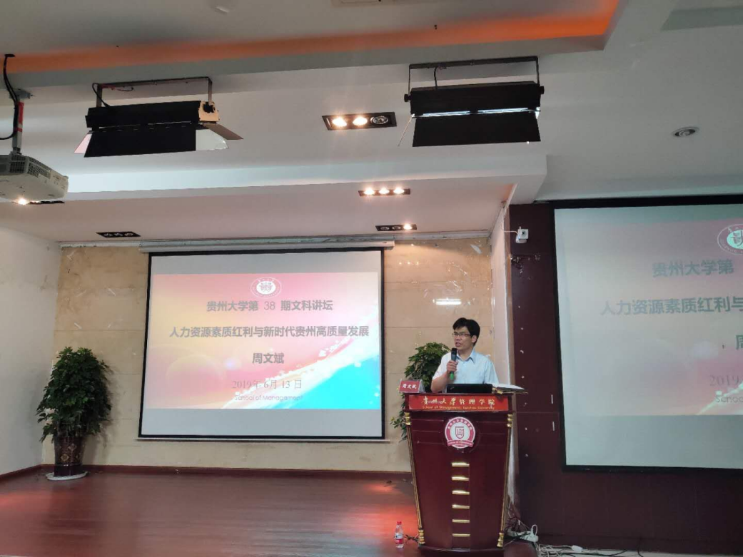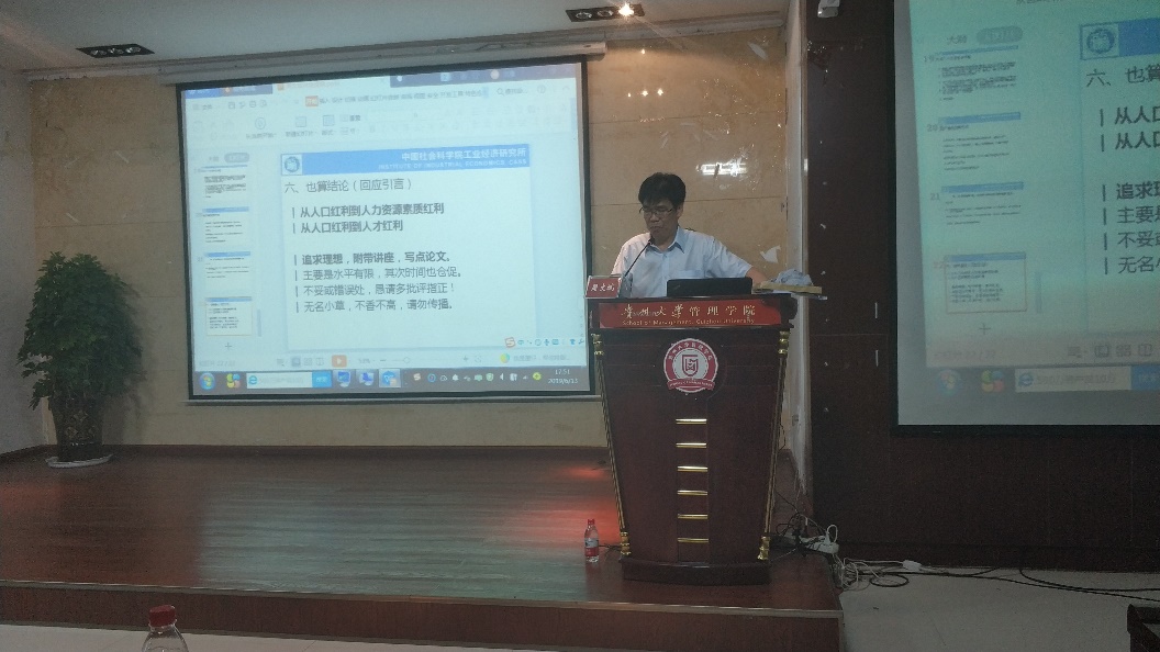 管理学院研究生科讯:应我校管理学院李烨院长邀请,中国企业管理研究会第四届副理事长、《经济管理》杂志社副主编、社长周文斌教授于2019年6月13日16:00在管理学院三楼报告厅做了题为“人力资源红利与新时代贵州高质量发展”的讲座。讲座由管院副院长王婷教授主持,管院全体研究生同学聆听。