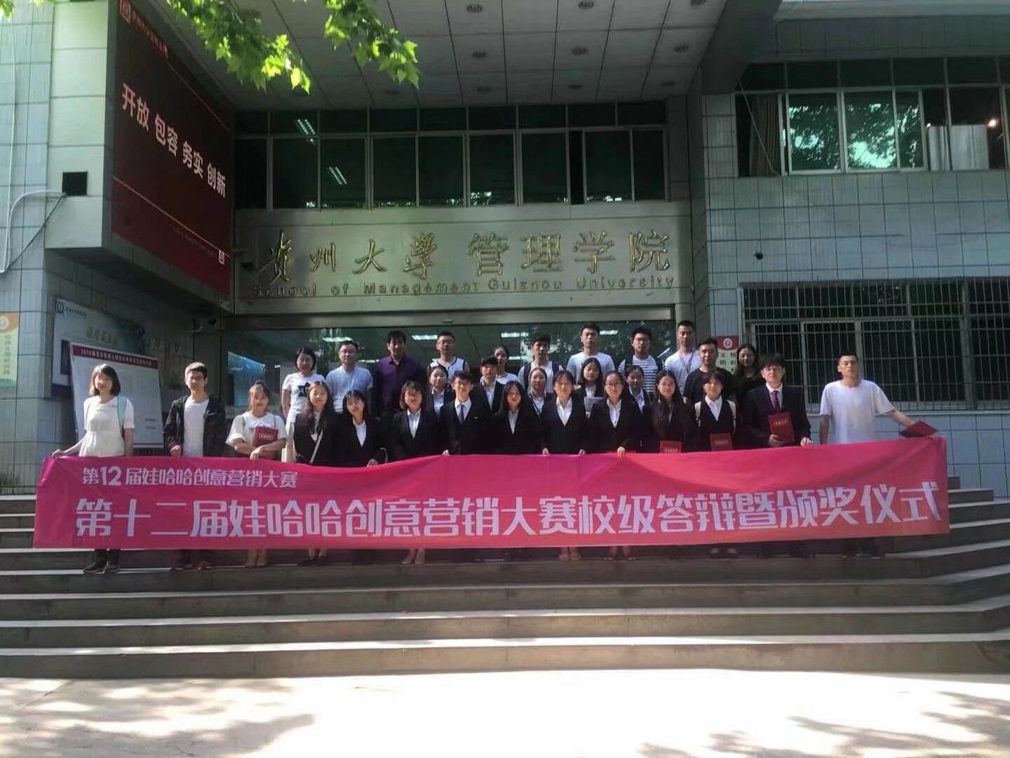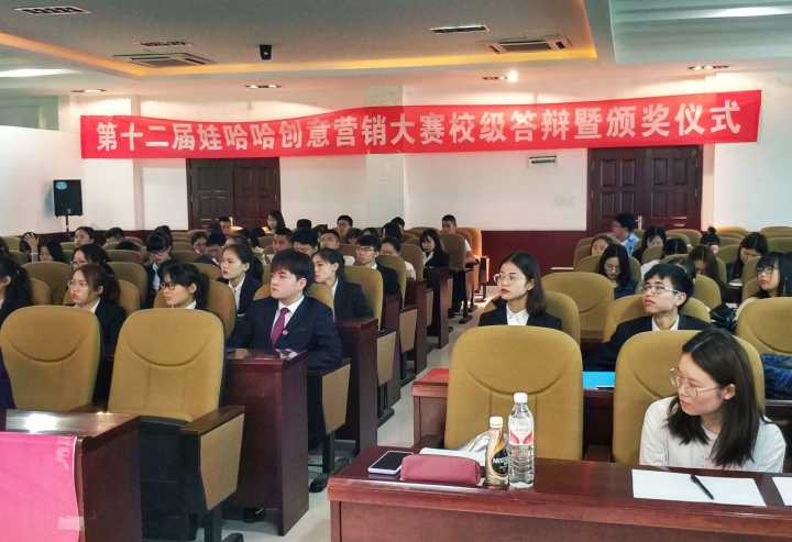 为激发大学生思维创新能力,充实学生校园生活。5月27日14点30分,贵州大学团委主办,乐动官方网站承办的第十二届娃哈哈营销创意大赛校级答辩暨颁奖仪式于管理学院三楼报告厅隆重举行。管理学院EDP中心主任张勇教授;管理学院创新创业中心负责人、营销学博士刘遗志副教授;杭州娃哈哈集团贵州市场企划部陈登明主任;杭州娃哈哈集团贵州市场策划部白国梁主任作为本次答辩大赛的评委,贵州大学校团委龙汶书记出席本次大赛嘉宾,共有八支来自贵州大学各学院的队伍进入最终的现场答辩环节。