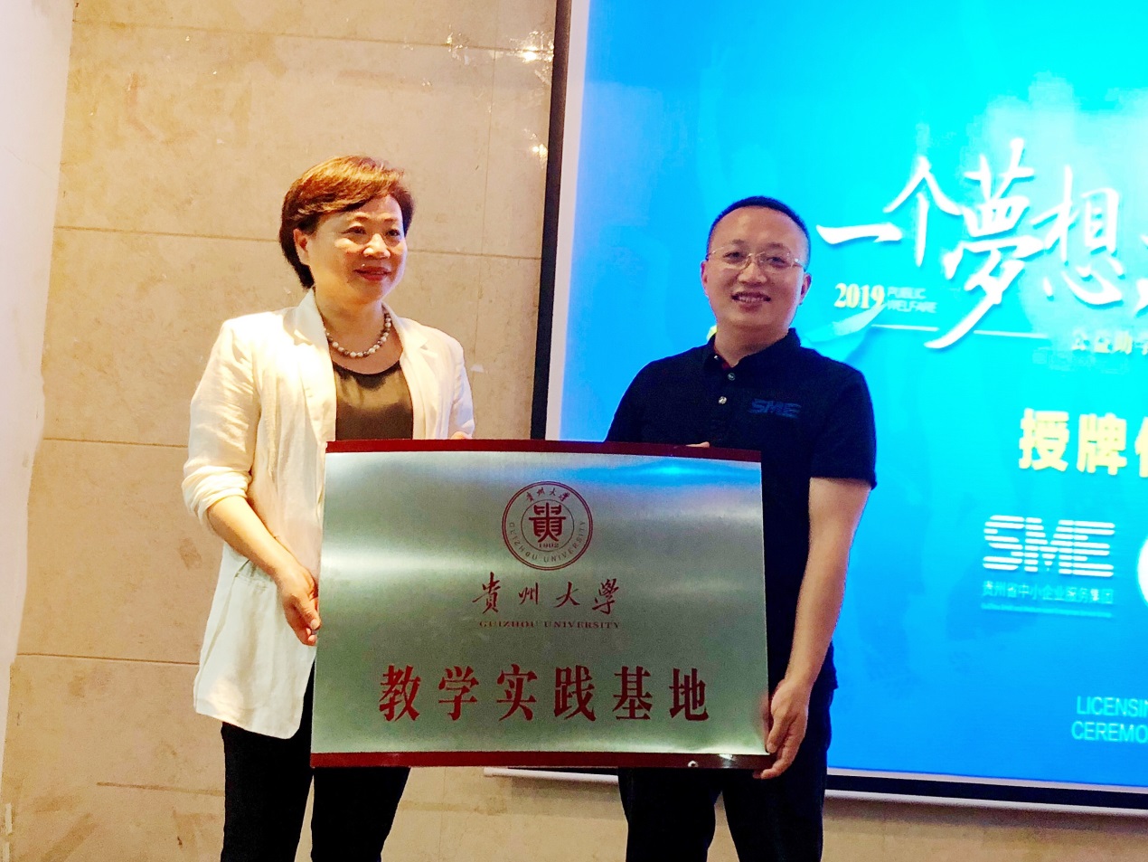 为丰富贵州大学教师和学生的实践实习基地资源,促进产学研相结合,强化大学生实践能力,717日,贵州大学与贵州省中心企业服务集团签订了校企合作战略协议并举行了实践基地授牌仪式。同时为帮助和激励贫困、优秀学生学习,贵州省中小企业服务集团百万助学计划(简称SME公益)在贵州大学正式启动。北京大学法学院房地产法中心主任楼建波,贵州大学党委副书记令狐彩桃、对外合作处副处长(主持工作)刘颖、资助中心主任赵祥伦、教务处副处长林益、大数据与信息工程学院党委书记刘剑、管理学院党委书记王秀峰、管理学院院长李烨,副院长王婷、周莉莉、宋山梅,贵州财经大学大数据应用与经济学院副院长时宏远,贵州省中小企业服务集团监事长刘川、董事长谢志楹、副总裁孙大奎、市场部总监郭肖及百名学生,共同见证了此项开创性公益活动。