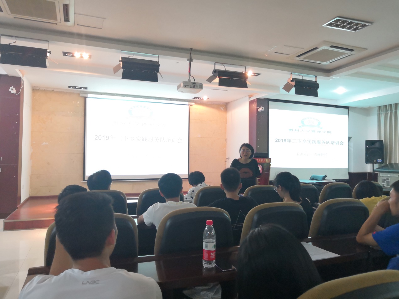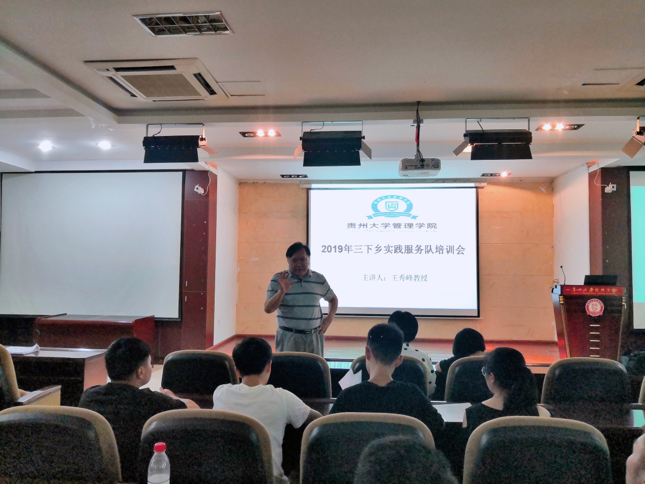 暑期将至,贵州大学各学院开展的暑期实践活动也接踵而来,为了使乐动官方网站暑期“三下乡”实践活动得到顺利开展,72914:30,乐动官方网站“三下乡”培训大会暨安全教育大会在学院三楼报告厅举行。学院党委书记王秀峰教授、团委负责人陈芊羽老师、学生会秘书长车婧娴老师出席本次大会,参加本次大会的还有管理学院暑期“三下乡”实践服务队的各同学。