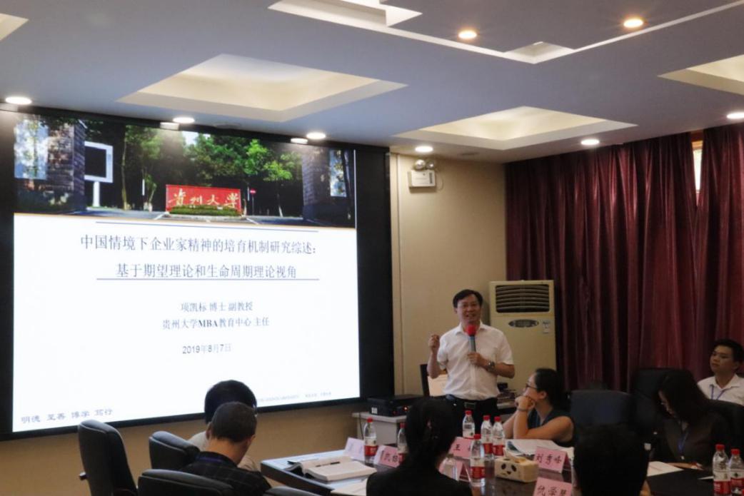 在分组研讨会上,项凯标副教授以《中国情境下企业家精神的培育机制研究综述——基于期望理论和生命周期理论视角》做了主题发言,主要从企业家精神培育的理论视角出发,揭示企业家精神培育的理论和实践价值。运用生命周期理论和期望理论,详细梳理了中国情境下企业家精神培育的动态演化机制。