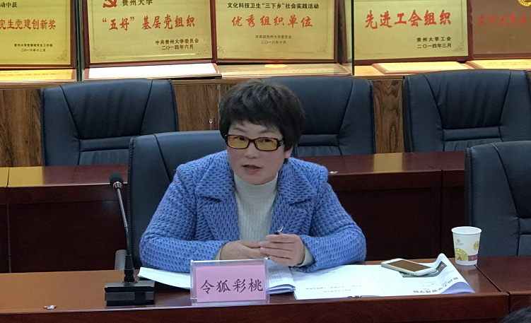 11月6日下午2:30,贵州大学党委副书记令狐彩桃到管理学院就主题教育工作开展情况进行调研指导,学院领导班子成员、各科室负责人和党支部书记参加会议,会议由党委书记王秀峰主持。