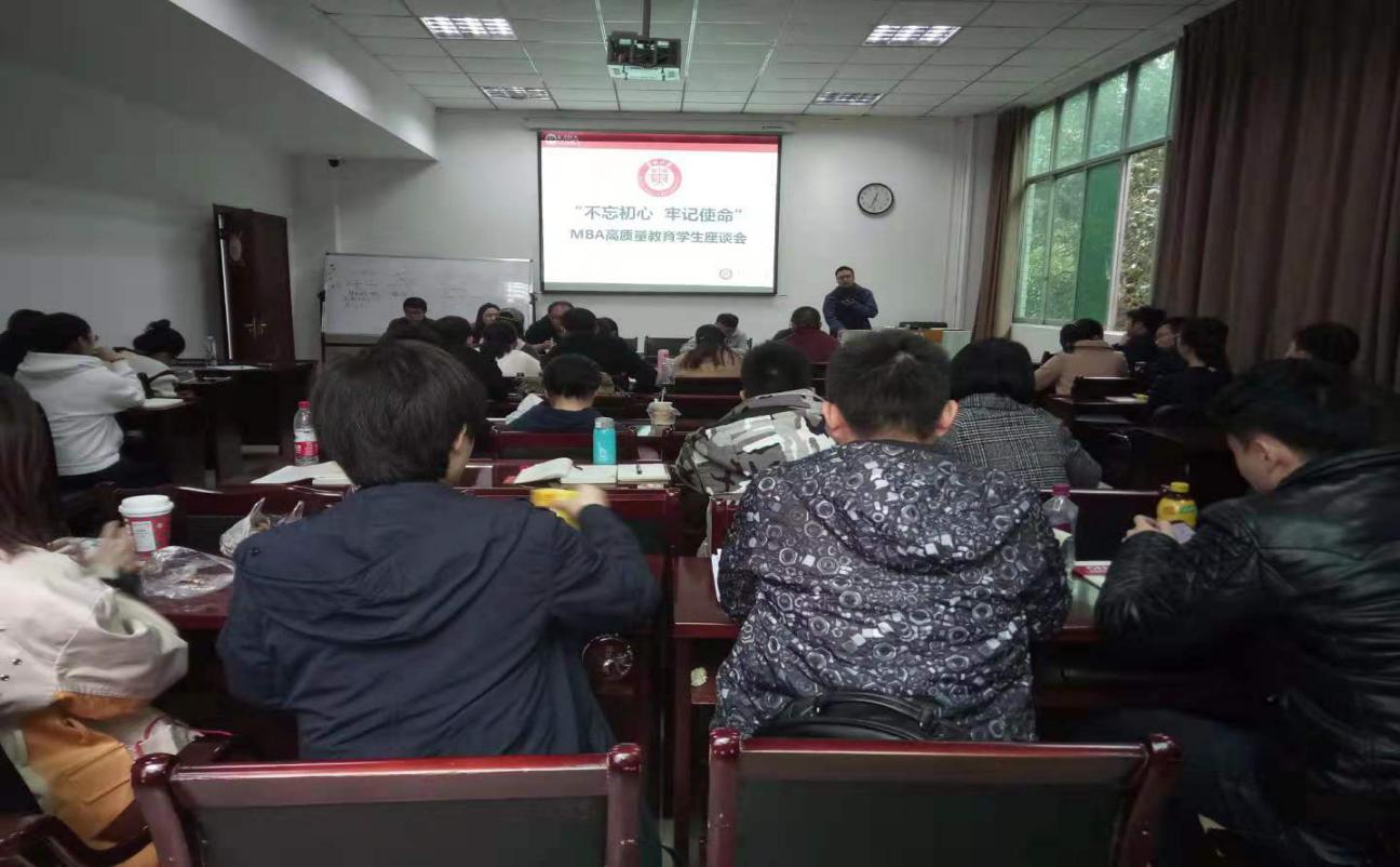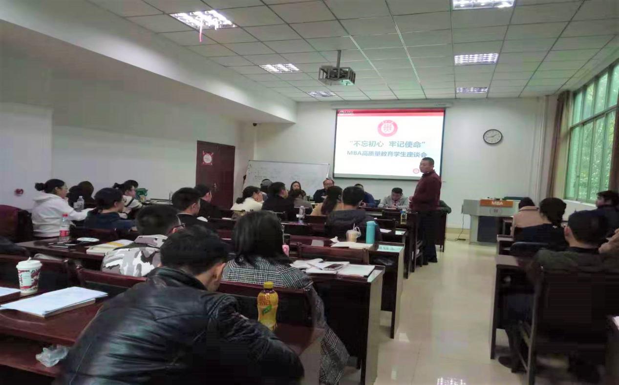 2019年11月9日,乐动官方网站MBA教育中心在201室举行了“不忘初心,牢记使命” MBA高质量教育学生座谈会。会议由MBA教育中心常务副主任何跃勇老师主持,中心办公室主任邓琳老师、中心雷声亮老师、凌聪老师、欧璐老师、江滔老师、缪春华老师和2017级、2018级、2019级各班班长、学习委员等共计30余人参加。