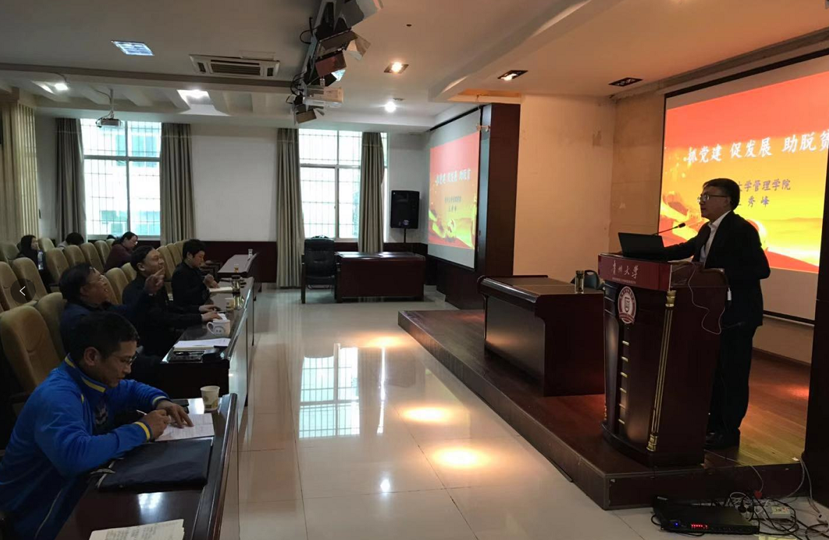 会前,学院党委委员通过认真贯彻落实理论学习、专题调研、检视问题等措施,经过对存在问题进行剖析,逐步梳理解决问题的思路和方法,结合实际工作,认真准备党课内容。王秀峰书记的党课题目是“抓党建、促发展、助脱贫”,李烨院长的党课题目是“聚焦一流建设 勇于担当作为 奋力推进管理学院学科高质量发展”。