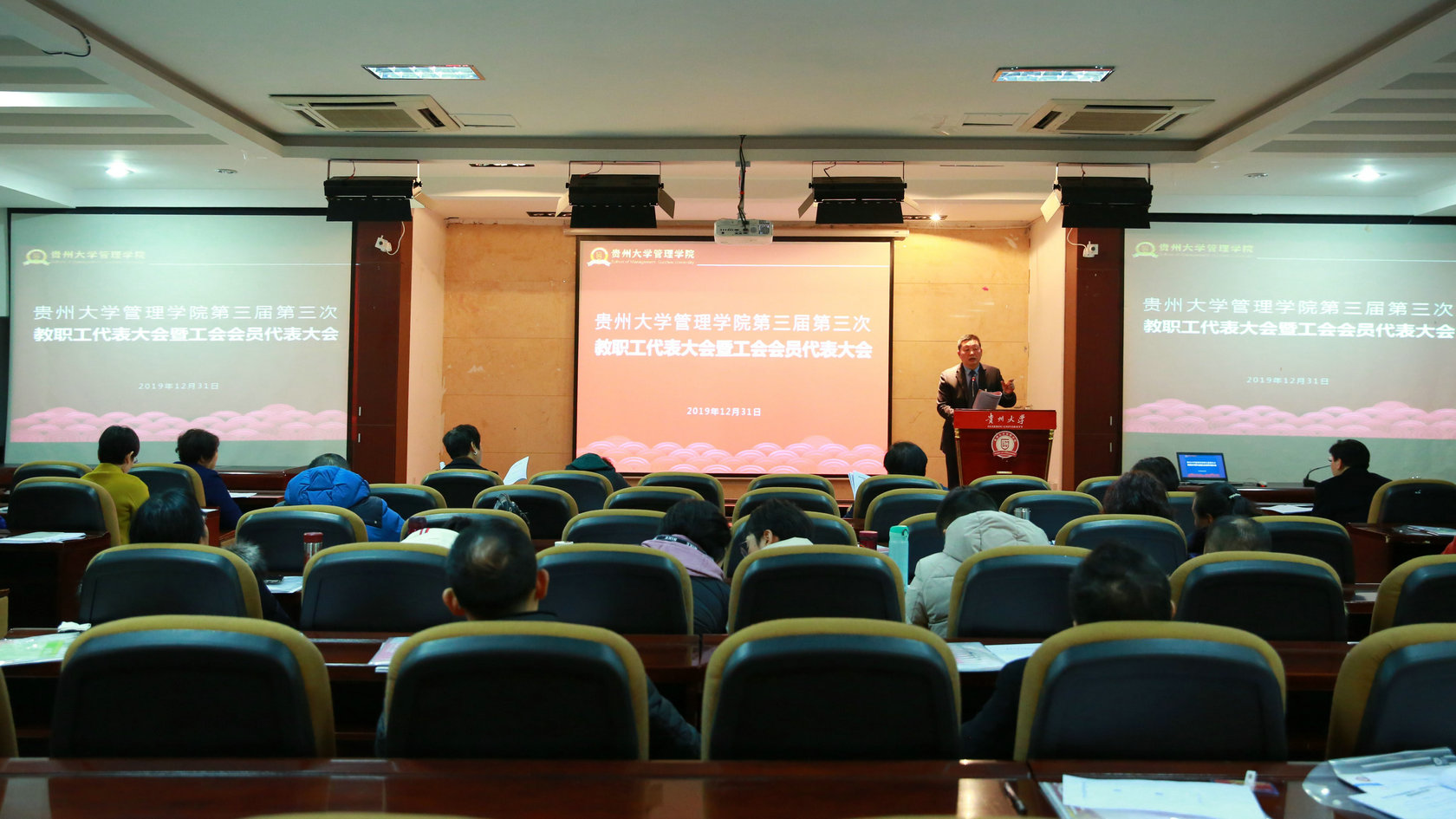20191231日中午,在管理学院三楼报告厅,顺利召开了乐动官方网站第三届第三次教职工代表大会暨工会会员代表大会,大会由学院周莉莉副院长主持。