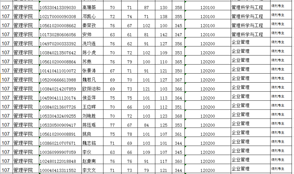 贵州大学2020年管理学院硕士研究生调剂复试名单