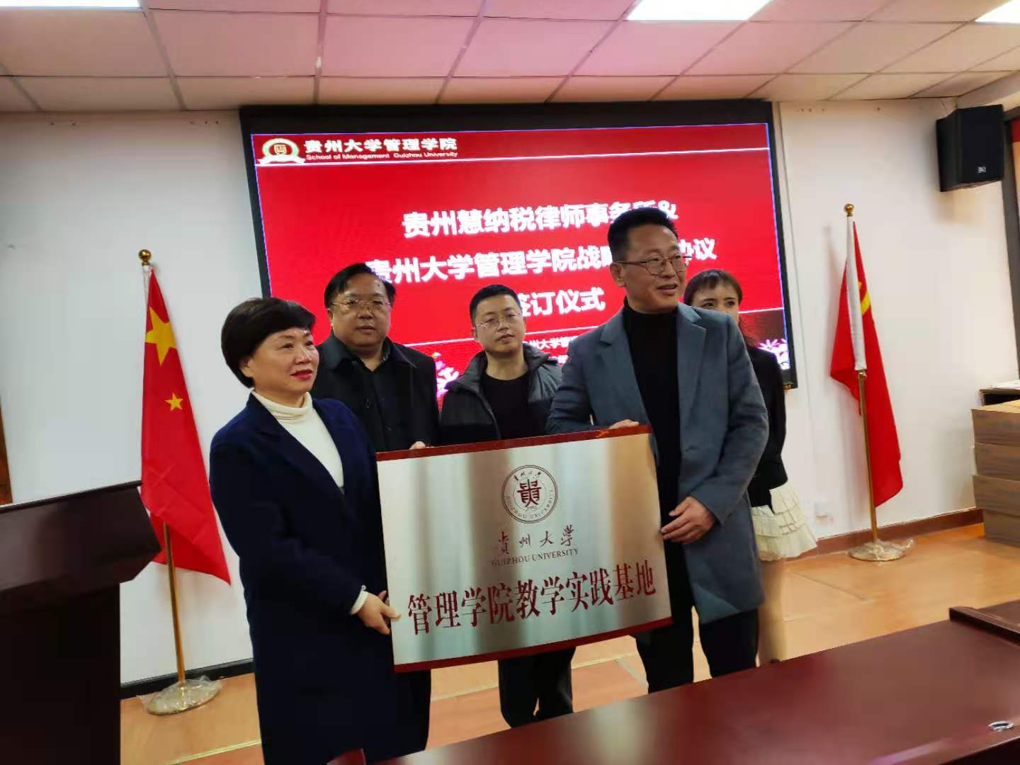 为丰富管理学院学生实践基地资源,促进产学研相结合,强化大学生实践能力, 20201130日,管理学院与贵州慧纳税律师事务所签订了校企合作框架协议及共建教学实践基地协议,同时举行了实践基地授牌仪式。管理学院党委书记王秀峰、副院长宋山梅会计系主任吕凡、对外合作办公室主任王云出席仪式,仪式由副院长宋山梅主持。