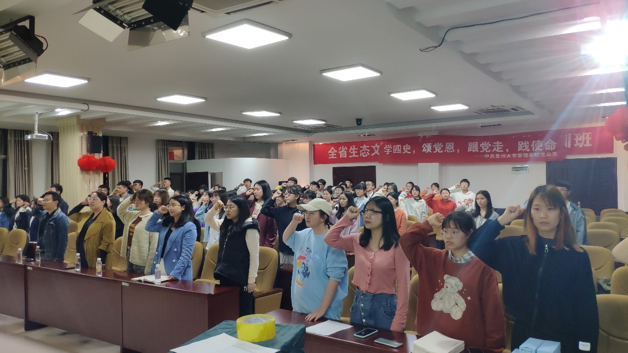 2021年4月21日19:00,“学党史、颂党恩、跟党走、践使命”——庆祝建党100周年“四史”知识竞赛在管理学院三楼报告厅举行。管理学院本科生党总支书记芮丽华、第一党支部书记陈芊羽、第二党支部书记向珂莹、第三党支部书记车婧娴、党总支委员陈黔江出席了本次比赛。全体本科生党员参加了本次知识竞赛。