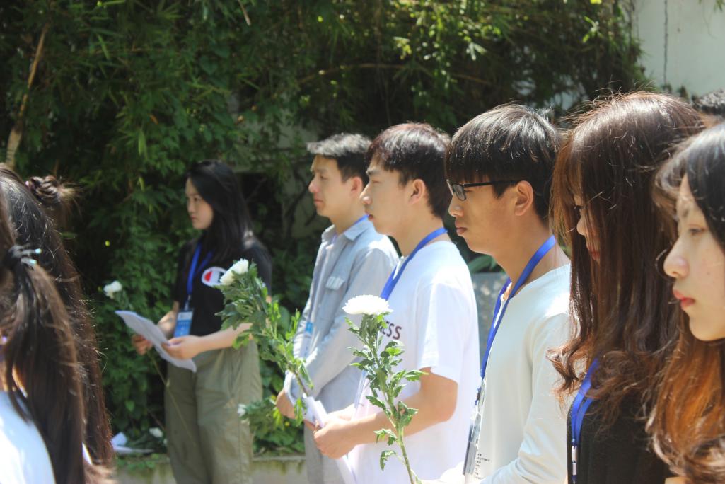 随后,与会人员进行祭扫活动仿佛在推开那段历史的窗口与身边的七女做着跨越时代的问候与互动。清扫完毕全体同学向七女献花致意、默哀行礼。青山不再语松涛不再滚时间也静默于对英烈的悼亡位同学都在寄托着对英烈的悠长哀思。今日的双手虽再也揩拭不去历史的泪痕但今人的双肩却在努力扛起时代的使命。