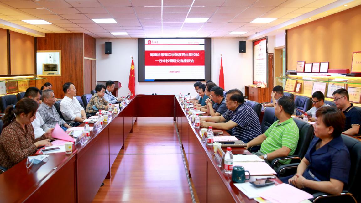 海南热带海洋学院副校长廖民生一行来我院交流座谈