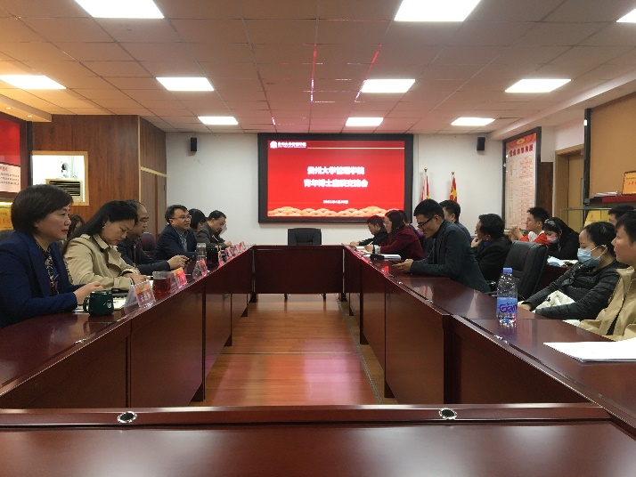 420日上午10点,学院在致远楼三楼陈列室召开青年博士座谈交流会。校哲学社会科学研究院周乐欣副院长应邀出席会议,学院领导班子、各系主任、近三年新进青年博士、在读博士共同参加会议,会议由院长李烨主持。