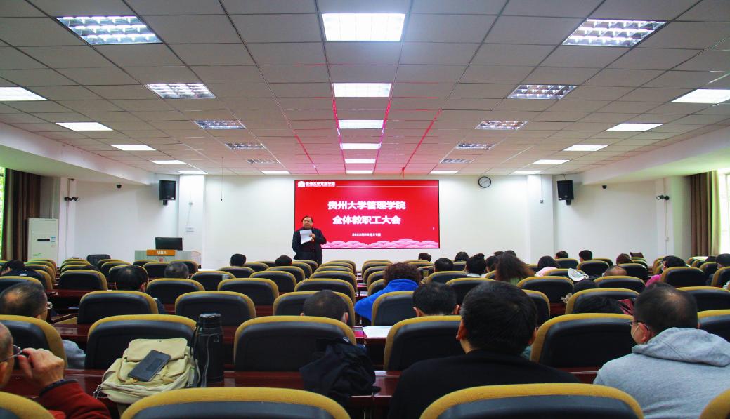 贵州大学正处级组织员周莉莉给MBA、EMBA教学任务等方面布置了任务,同时也强调“博学计划”的有效落实,要求各专业老师在课堂内外积极指导学生,踏实提高学生升学质量。在党建工作方面,她指出,各支部书记要按照组织部要求完成贵州大学2022年度基层党建工作成效考核工作。而在赛事方面,她尤其指出第18届“挑战杯”将在贵州大学承办,并鼓励各位同学积极参与,要求各位老师要积极指导学生,为管院的发展助力。