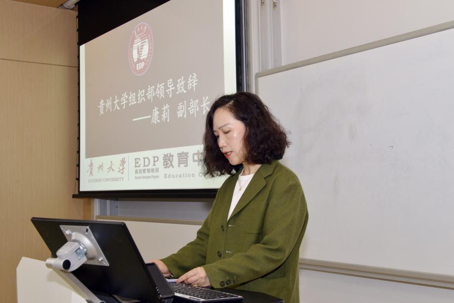 贵州大学正处级组织员、贵州大学教育培训管理工作专班负责人付芳,贵州大学组织部副部长康莉,乐动官方网站党委书记王秀峰,贵州大学EDP教育中心主任张勇出席本次开班式,开班式由乐动官方网站副院长宋山梅主持。