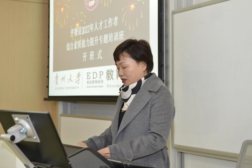 11月15日上午,由贵州省平塘县委组织部主办,贵州大学承办的平塘县2022年人才工作者综合素质能力提升专题培训班开班仪式在贵州大学东校区管理学院102顺利开班。来自我省平塘县人才服务专员、人才基地创建负责同志共40 人开始接受为期4天的培训。这是深入学习贯彻党中央重要讲话精神,深刻把握新时代人才工作的新理念新战略新举措。