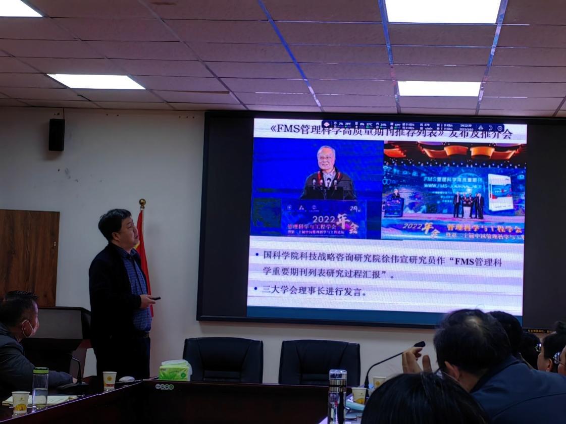 随后,王婷副院长分享了参加管理科学与工程学会2022年年会的收获与体会,此次年会围绕“数智赋能背景下的管理科学与工程”主题进行学术交流与研讨,管理科学与工程领域众多专家学者、研究生等近1600人参加会议。本次年会还设置了学科与专业建设、青年学者、博士生、主题分论坛主题进行学术交流与研讨。贺庆仁教授介绍了《FMS管理科学高质量期刊推荐列表》发布及推介会的相关内容,向各位老师详细介绍了当前管理科学方面的国内外高质量期刊以及投稿建议。