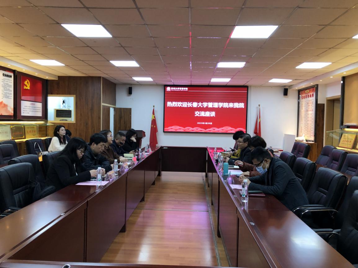 2023328日上午,长春大学管理学院副院长黄晓红、副院长刘富成、会计学系主任程志刚、财务管理系主任唱晓阳、工商管理系副主任张贺一行来我院调研。我院副院长李本光、副院长宋山梅、党政办公室主任徐兰、工商管理系主任兼系支部书记许为宾、会计系主任吕凡等与来宾座谈交流。
