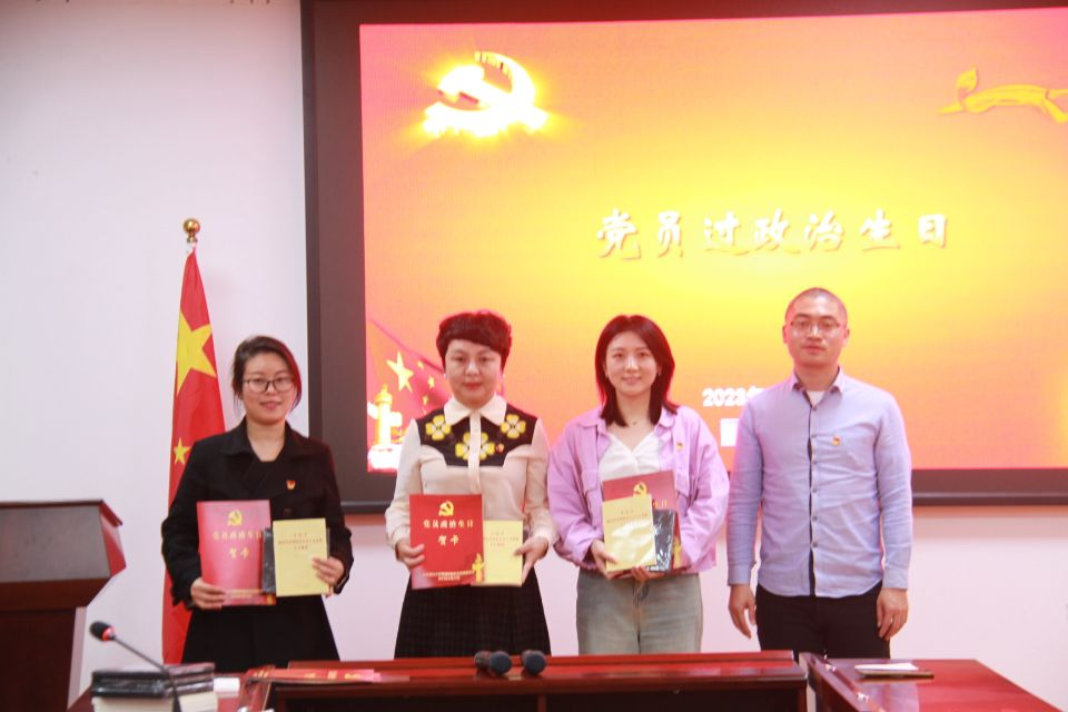 在党员过政治生日环节,学院机关党支部书记江波同志、管理科学与工程系教工党支部书记陈刚同志分别给2023年度第二季度过政治生日的党员赠送生日贺卡和书籍。过政治生日的党员周莉莉同志、邓琳同志、陈刚同志、赵一萍同志、周琳同志分别围绕各自的入党初心、成长历程与大家分享作为九千多万党员中的一子的所思所想所感,同时也对各自今后工作提出了更加严格的自我要求。